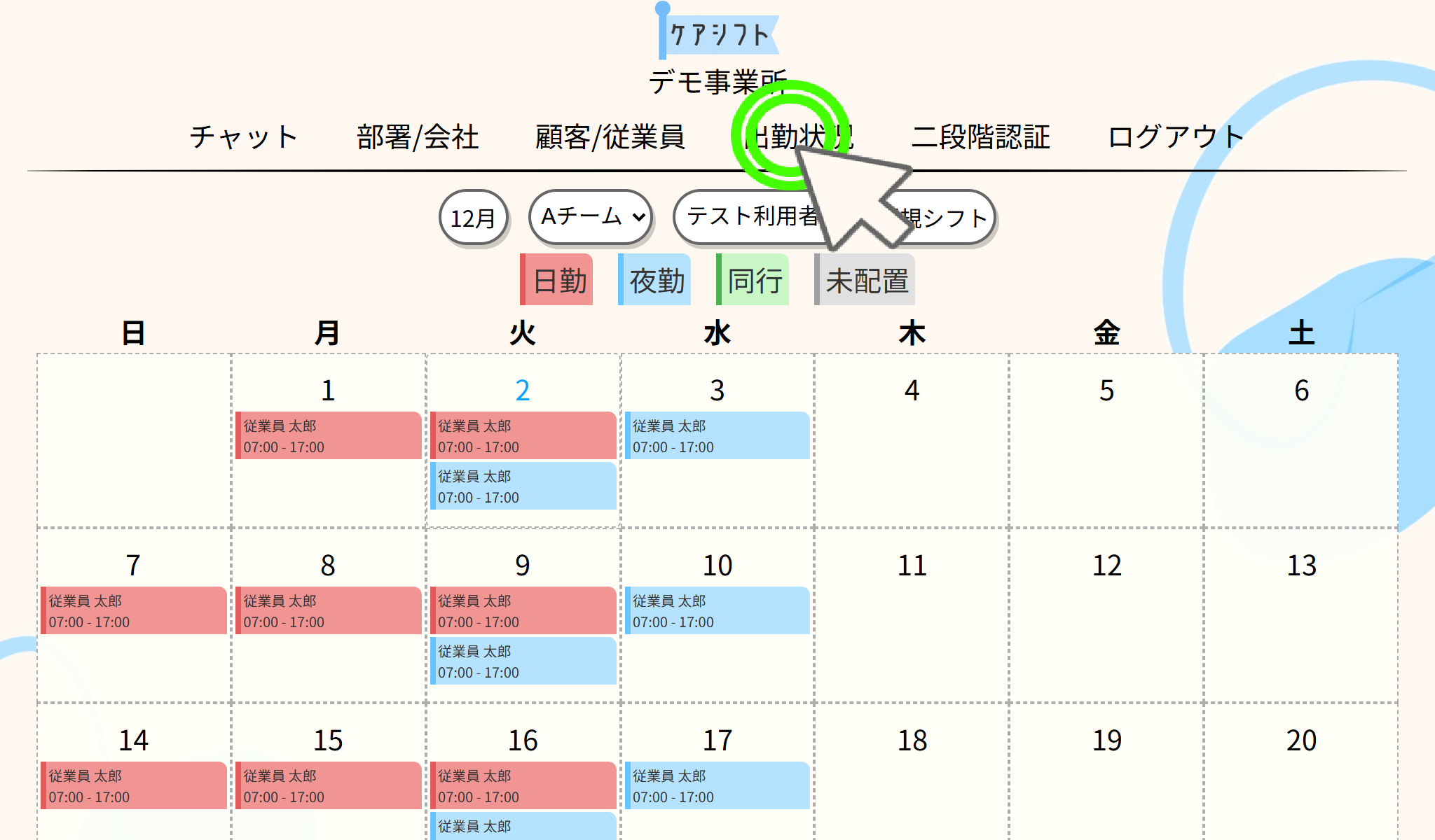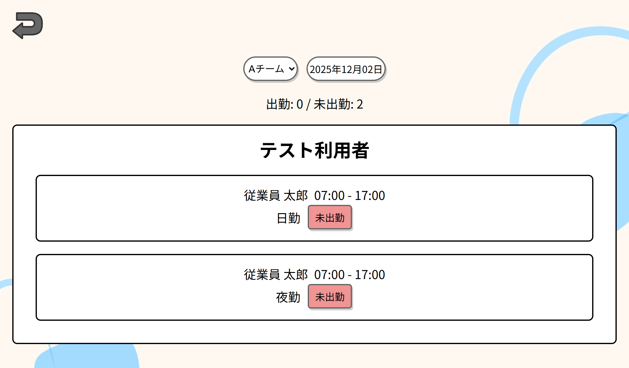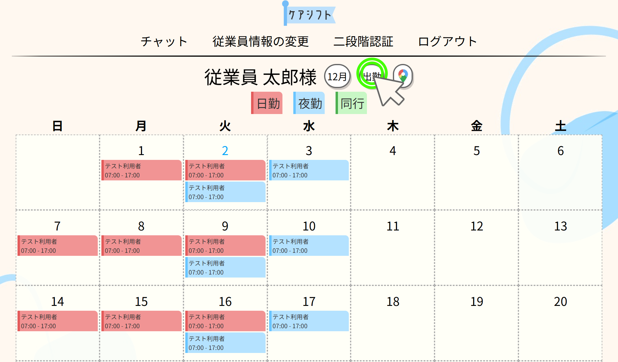 従業員側は当日にならないと出勤ボタンを押すことは出来ません