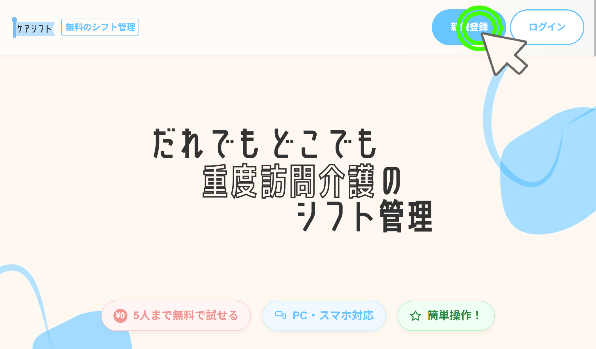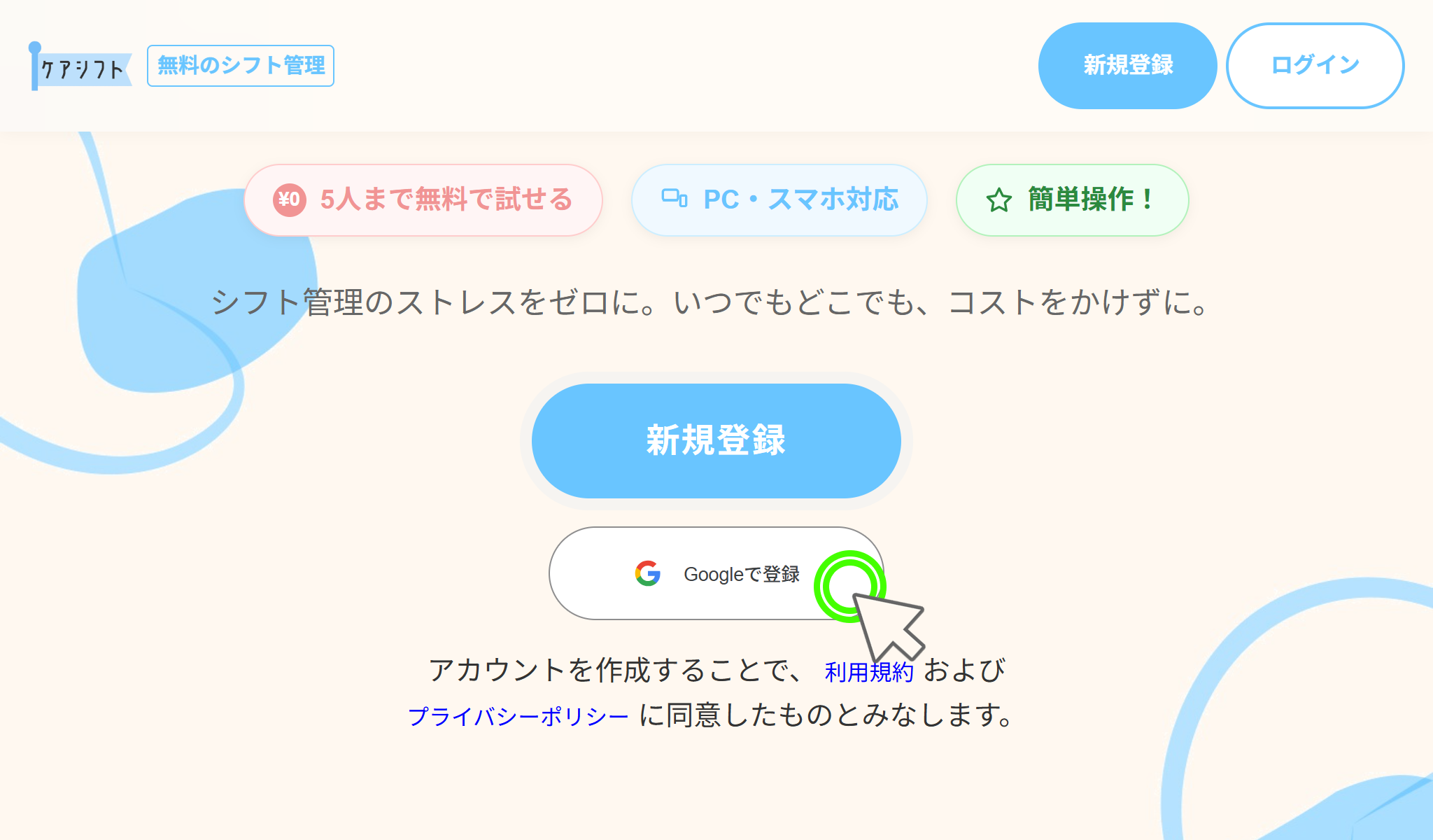 登録ページで必要な情報を入力し登録するボタンを押してください