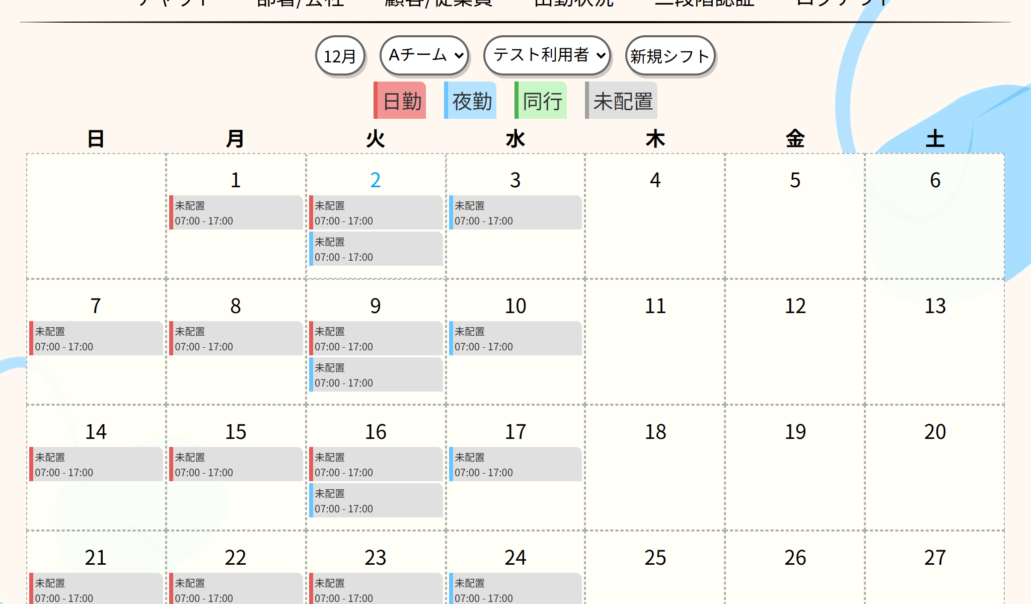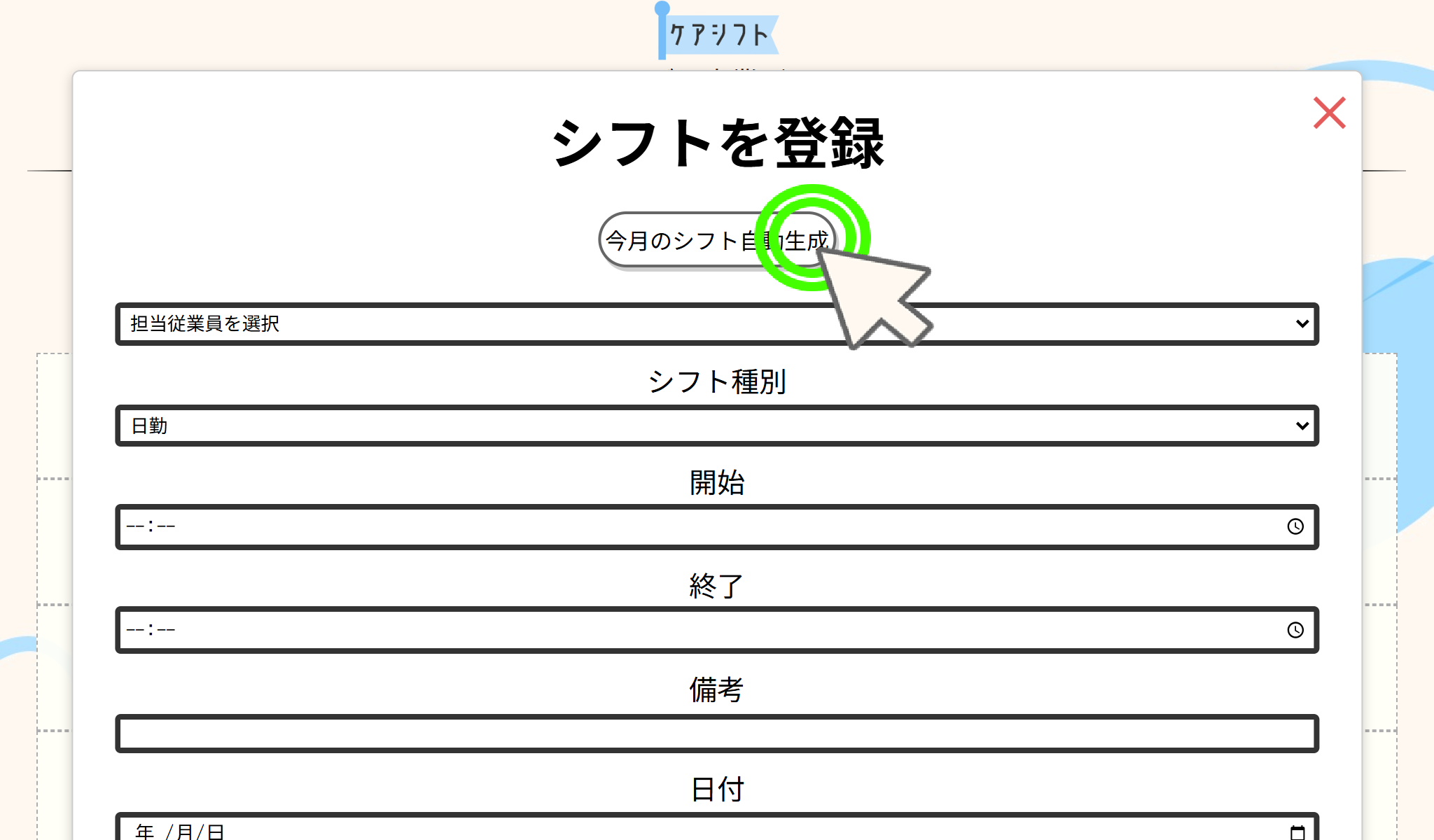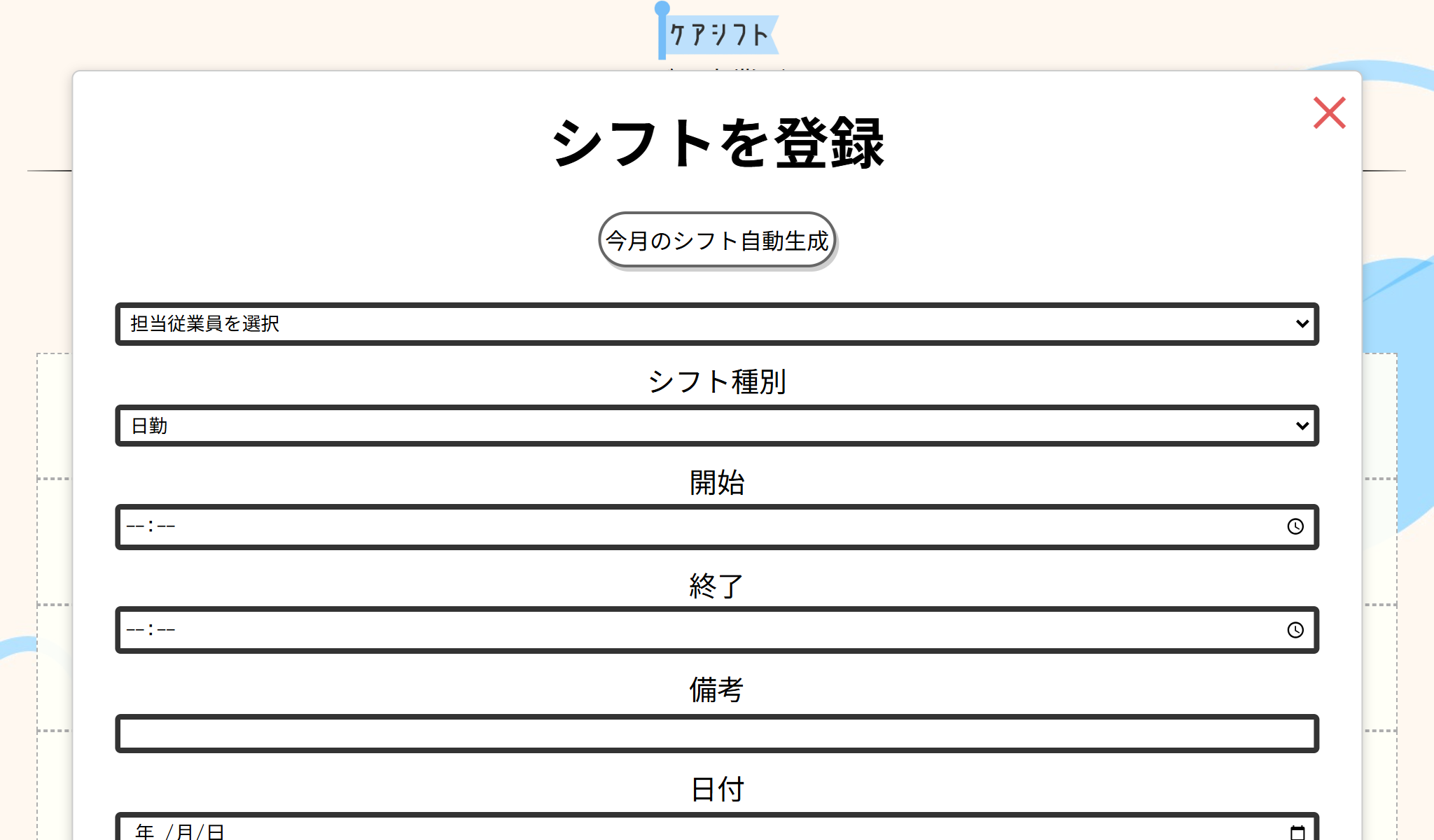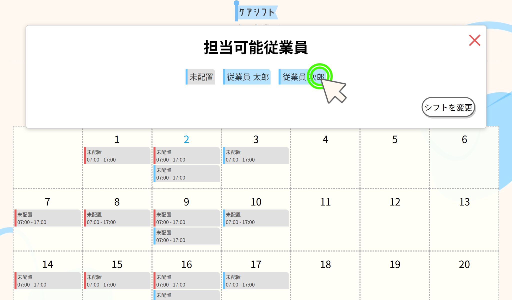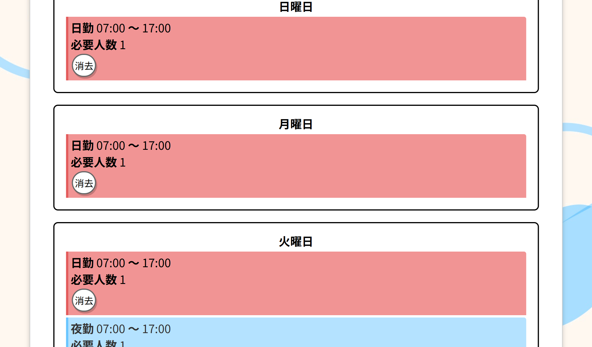 このアプリケーションのシフト作成方法を説明します。
